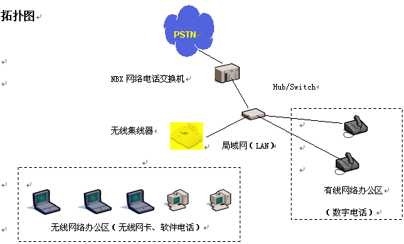 隨著信息時(shí)代的來臨,電話、電腦成了辦公領(lǐng)域的重要工具,人們?cè)谵k公室通過計(jì)算機(jī)網(wǎng)絡(luò)共享數(shù)據(jù)資源、傳遞數(shù)據(jù)信息,彼此間通過電話言語(yǔ)溝通。在人們享受到高科技帶來的高效率的同時(shí),也感到一些不便,例如計(jì)算機(jī)網(wǎng)絡(luò)、電話網(wǎng)都需要單獨(dú)鋪設(shè)專用的線路,線路的變更往往是讓人心煩的事情。隨著各公司推出無線局域網(wǎng)絡(luò)解決方案(AirConnect)和NBX網(wǎng)絡(luò)電話交換機(jī)平臺(tái)的推出,通過無線局域網(wǎng)絡(luò)技術(shù),語(yǔ)音、數(shù)據(jù)兩網(wǎng)合一技術(shù),將電腦、電話機(jī)合二為一,同時(shí)從線路的束縛中解放出來。人們?cè)僖膊挥脫?dān)心布線問題,可以隨處移動(dòng)辦公,享受無線網(wǎng)絡(luò)、無線話音,大大提高人們的辦公效率。