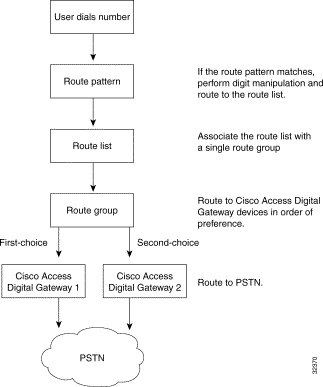 Callmanager使用Route Plan來路由所有的內(nèi)部和外部電話(PSTN),route patterns,route filers,route lists,和route groups提供了一種適應(yīng)性較強的網(wǎng)絡(luò)設(shè)計方式。下圖是其基本框圖,圖中是一個帶有外部網(wǎng)關(guān)的情況,本方案的情況似乎要簡單些,在route groups處 不再做過多的劃分。