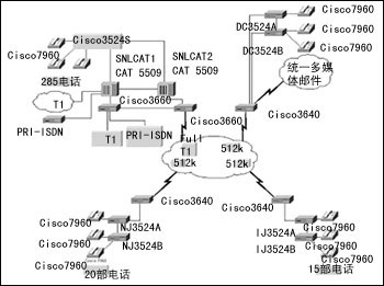 5500骨干網(wǎng)交換機(jī),并正在對(duì)其進(jìn)行升級(jí),以支持千兆以太骨干網(wǎng)。它還保留了現(xiàn)有的思科3600系列路由器,為各個(gè)分支機(jī)構(gòu)間的WAN和互聯(lián)網(wǎng)提供連接,用特有的WAN接口卡(WIC)支持他們的語(yǔ)音業(yè)務(wù)。因?yàn)槟苤С?30多部思科IP
