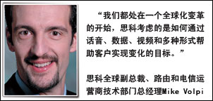 所有的運(yùn)營(yíng)商都處在一個(gè)全球化變革的開(kāi)始,思科的機(jī)會(huì)是通過(guò)話(huà)音、數(shù)據(jù)、視頻的多種形式幫助客戶(hù)實(shí)現(xiàn)變化的目標(biāo)。