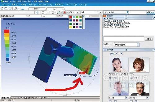 WebEx中國區(qū)市場經(jīng)理黃艷的演示中,整合了包括視頻對話、文件共享、協(xié)同畫圖、權(quán)限管理等功能的WebEx,效果儼然和傳統(tǒng)開會沒有任何區(qū)別。5人的會議內(nèi)容中,大家可以相互面對面發(fā)言;對某個文件內(nèi)容有疑問,可以一同在上面涂涂改改;一邊講一邊能夠翻動演示的PPT讓所有人看見;甚至還能共享自己的桌面讓所有看見,并且操作。