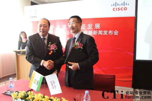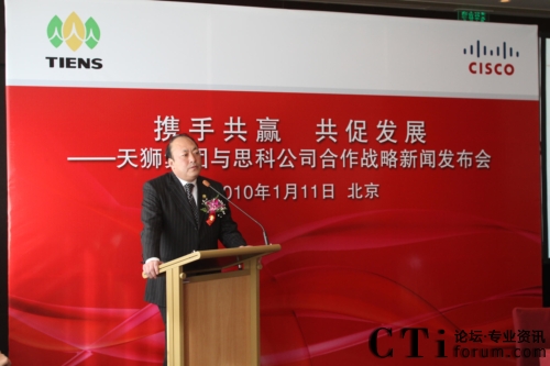 CTI論壇(ctiforum)1月12日消息(記者 張塵):2010年1月11日,北京——“攜手共贏(yíng) 共促發(fā)展——天獅集團(tuán)與思科公司戰(zhàn)略項(xiàng)目新聞發(fā)布會(huì)”在北京召開(kāi),雙方共同宣布,天獅集團(tuán)國(guó)際健康產(chǎn)業(yè)園網(wǎng)絡(luò)平臺(tái)成功啟用,并正式達(dá)成合作戰(zhàn)略。天獅集團(tuán)董事長(zhǎng)兼總裁李金元先生與思科全球副總裁、思科中國(guó)副董事長(zhǎng)兼總裁林正剛先生出席新聞發(fā)布會(huì),并進(jìn)行簽約儀式。通過(guò)本次強(qiáng)強(qiáng)聯(lián)合,思科面向服務(wù)的網(wǎng)絡(luò)架構(gòu)(SONA)全面部署于天獅集團(tuán)國(guó)際健康產(chǎn)業(yè)園,為天獅集團(tuán)業(yè)務(wù)的穩(wěn)定持續(xù)發(fā)展以及信息化水平的進(jìn)一步提升提供了可靠保證,同時(shí)也為雙方未來(lái)更深層次的合作打下了堅(jiān)實(shí)的基礎(chǔ)。