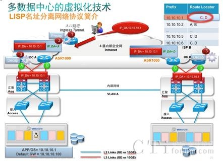 對于LISP解決了遠(yuǎn)程訪問數(shù)據(jù)中心遷移后虛機(jī)的精確位置問題,LISP需要數(shù)據(jù)中心和遠(yuǎn)程的路由設(shè)備都要支持,但不需要中間網(wǎng)絡(luò)的每一條網(wǎng)絡(luò)設(shè)備都支持,這一點(diǎn)非常重要。