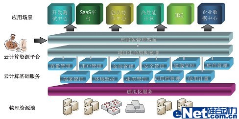 企業(yè)云通過采用硬件設(shè)備虛擬化、軟件版本標(biāo)準(zhǔn)化、系統(tǒng)管理自動化和服務(wù)流程一體化等手段,把傳統(tǒng)的數(shù)據(jù)中心建設(shè)成為一個以服務(wù)為中心的運(yùn)行平臺,資源的使用方式從專有獨占方式轉(zhuǎn)變成完全共享方式,運(yùn)行環(huán)境可以自動部署和調(diào)整資源分配,實現(xiàn)資源隨需掌控,從而幫助客戶建立一個基于業(yè)務(wù)的資源共享、服務(wù)集中和自動化的開放數(shù)據(jù)中心。