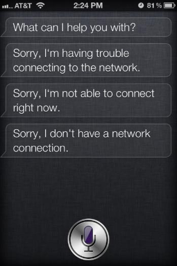 Siri不只是一個(gè)簡(jiǎn)單的語(yǔ)音控制軟件。為了能夠正常運(yùn)行,它必須連接到蘋(píng)果公司的服務(wù)器去獲取其他信息。例如,當(dāng)用戶詢問(wèn)Siri田納西州納什維爾市的天氣情況時(shí),它必須與擁有此類(lèi)信息的主數(shù)據(jù)庫(kù)進(jìn)行通信,然后再將結(jié)果反饋給用戶。