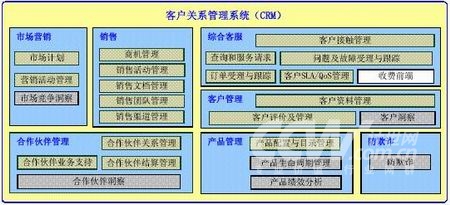 AIOpenCRM包含市場(chǎng)營(yíng)銷(xiāo)、銷(xiāo)售、綜合客服、合作伙伴管理及產(chǎn)品管理等關(guān)鍵功能領(lǐng)域,如下圖: