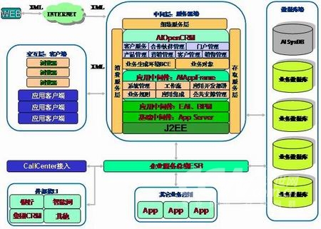 AIOpenCRM使用基于J2EE架構(gòu)的組件框架平臺(tái)AIAppFrame實(shí)現(xiàn)。AIAppFrame是一個(gè)開(kāi)發(fā)平臺(tái),它屏蔽了開(kāi)發(fā)人員對(duì)J2EE底層技術(shù)的接觸,提供了一套開(kāi)發(fā)模式、開(kāi)發(fā)組件以及應(yīng)用功能,如系統(tǒng)管理(如用戶、安全、權(quán)限等)、公共支撐管理(如消息、郵件、知識(shí)庫(kù)等)、工作流管理、業(yè)務(wù)規(guī)則管理、系統(tǒng)監(jiān)控等等。