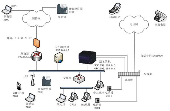 NTX IP融合通信電話總機網(wǎng)絡架構(gòu)