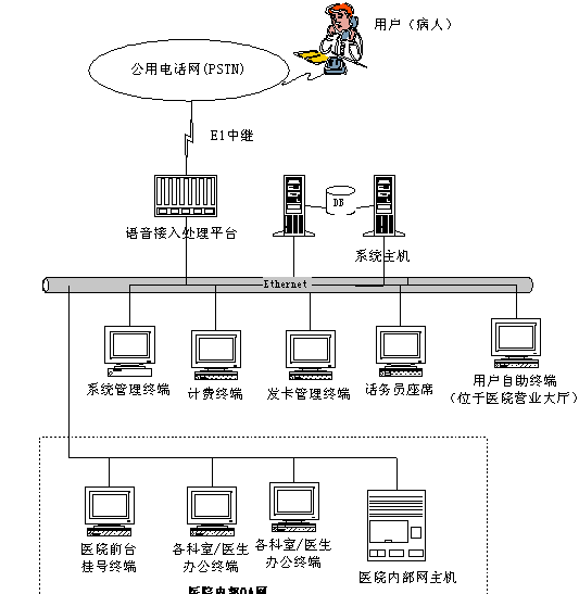 2、 可以為醫(yī)院提供多種跟用戶溝通的方式,方便用戶就診。系統(tǒng)支持的跟用戶溝通的方式包括:電話、傳真、Internet、短消息、WAP等。電話服務(wù)中,用戶還可以選擇自動語音服務(wù)和人工服務(wù)。