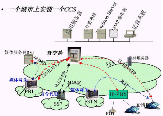 為了完整解決城域網(wǎng)上承載話音業(yè)務(wù),實現(xiàn)IP phone 到PSTN、IP phone 到 IP phone、PSTN 到IP phone的呼叫。新太公司的集成方案中包括以下設(shè)備:軟交換核心設(shè)備、媒體網(wǎng)關(guān)、信令網(wǎng)關(guān)、IP PBX、IP 話機、PC IP Softphone、媒體服務(wù)器。