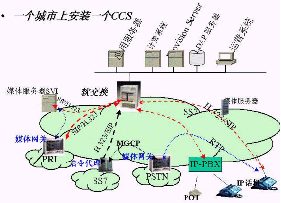 下一代電信網(wǎng)絡(NGN)體系結構為新興的電信運營商真正介入端到端的話音業(yè)務提供了契機。目前,銅纜資源為中國電信所壟斷,許多新興的電信運營和寬帶運營商正為如何真正介入語音電話而煩惱。但是隨著技術的進步,語音編解碼的出現(xiàn),在IP網(wǎng)絡上傳送語音的技術已經(jīng)較為成熟。同時在下一代電信網(wǎng)絡體系結構中解決了phone to IP-phone,IP-phone to phone 的地址映射問題,為新電信運營商介入語音業(yè)務提供了技術手段。同時,各個地方寬帶城域網(wǎng)、接入網(wǎng)的建設,特別是寬帶接入網(wǎng)建設為基本為都提供了用戶提供10M速率的接入。而且寬帶接入網(wǎng)建設上的競爭日益激烈,中國電信、長城寬帶、聯(lián)通、網(wǎng)通都有一定的寬帶接入用戶的份額,為新興的電信運營商介入語音業(yè)務提供了物理手段。隨著信息產(chǎn)業(yè)部對各電信運營商互聯(lián)互通要求的加強,為新興的電信運營商介入語音業(yè)務提供了較好的可運營環(huán)境。雖然目前在IP網(wǎng)絡上沒有提供Qos保證的機制,但IP骨干和接入網(wǎng)為用戶提供充足的帶寬同樣能做到較好的話音質量。IP電話的出現(xiàn)也為有線網(wǎng)路介入話音業(yè)務提供了技術手段。同時目前在建成的寬帶接入網(wǎng)上應用的只有上網(wǎng)業(yè)務,如何增加寬帶接入的應用,提高寬帶接入網(wǎng)的收入,是寬帶運營商最關心的事情。我們能夠提供一整套的解決方案利用寬帶接入(五類線)為新興的寬帶運營提供市話、長話業(yè)務。