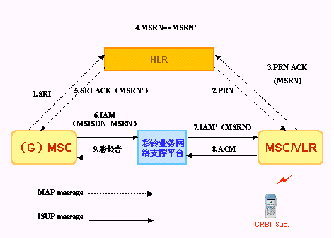 此種方案需要改造MSC交換機,使其支持彩鈴業(yè)務(wù),在HLR中需要對那些開通多彩鈴音業(yè)務(wù)的用戶增加業(yè)務(wù)屬性,并對其進行標記。