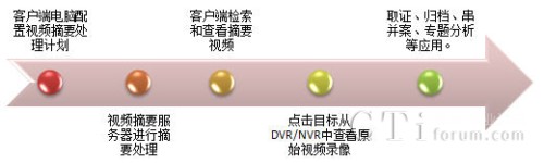 新太視頻摘要比對系統(tǒng)(SUNTEK-VSCS)基于尖端的圖像/視頻理解與圖像搜索技術,通過對海量視頻錄像的智能分析,提取出錄像中的運動分量,并進行視頻內容的整合壓縮,使監(jiān)控人員能在很短的時間內通過視頻摘要了解監(jiān)控區(qū)域發(fā)生的事件;系統(tǒng)同時可通過目標的特征進行搜索比對,快速定位車輛、人員或其它物體等目標,并提取回放特定目標的錄像內容。通過該系統(tǒng)可節(jié)約大量的時間與精力,解決人工查看整個視頻流所帶來的困擾。