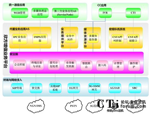 可在此基礎(chǔ)上提供形成了多媒體呼叫中心、IPPBX、IPCentreX、IVR/IVVR二次開發(fā)平臺、一號通、即時消息/呈現(xiàn)等一系列的重量級新型業(yè)務(wù),同時其所提供的業(yè)務(wù)開發(fā)能力允許第三方自主的研發(fā)和部署的業(yè)務(wù)應(yīng)用,滿足業(yè)務(wù)應(yīng)用的個性化需求。