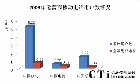 截至2009年12月31日,國內(nèi)移動(dòng)電話用戶累計(jì)達(dá)到74738.4萬戶,中國移動(dòng)的用戶總數(shù)已達(dá)到5.22億戶,累計(jì)客戶凈增長6503.3萬戶,在三大運(yùn)營商中,中國移動(dòng)的用戶保有量和每月新增用戶數(shù)份額仍然最大。
