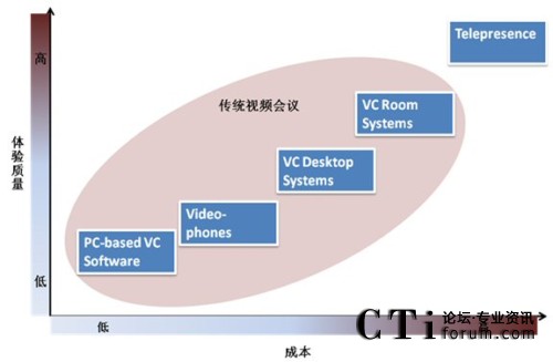 & Sullivan 咨詢顧問楊梅從體驗(yàn)質(zhì)量及成本兩個(gè)緯度對(duì)目前市場上的視頻會(huì)議系統(tǒng)產(chǎn)品進(jìn)行了深入比較,發(fā)現(xiàn)網(wǎng)真在體驗(yàn)質(zhì)量上要明顯高于其他產(chǎn)品,然而其在部署成本上同樣要高于其它產(chǎn)品,這也是目前網(wǎng)真產(chǎn)品推廣中遇到的較大問題。如何能使客戶真正了解建立虛擬互動(dòng)社區(qū)的需求,如何從貴族化走向平民化成為其蓬勃發(fā)展的關(guān)鍵。