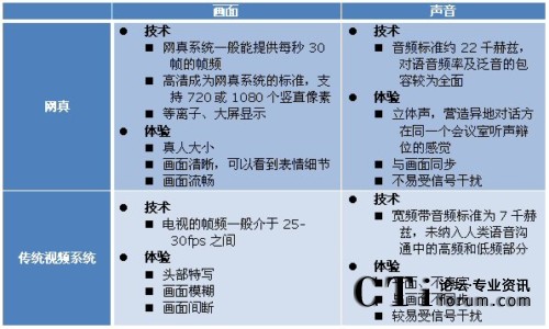 網(wǎng)真產(chǎn)品與企業(yè)的其他視覺溝通產(chǎn)品不同,不同于以軟件為基礎(chǔ)的視頻通信應(yīng)用、電話視頻、以硬件為基礎(chǔ)的桌面視頻系統(tǒng)及群體視頻會(huì)議等各類傳統(tǒng)視頻系統(tǒng)。Frost