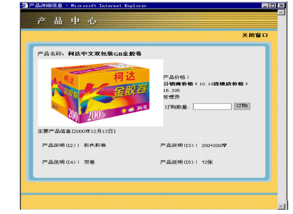 產(chǎn)品詳細(xì)信息中的產(chǎn)品價(jià)格會(huì)根據(jù)登錄者的不同身份給出不同等級(jí)的價(jià)格信息。在用戶瀏覽產(chǎn)品詳細(xì)信息的時(shí)候,也可以填寫產(chǎn)品數(shù)量并選擇訂購(gòu)。