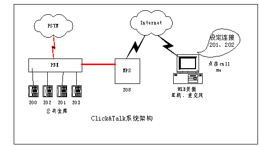 舉個例子,在傳統(tǒng)的網(wǎng)上交流手段下,對于一個在線商戶來說,其客戶如果需要與而且也容易造成客戶流失,F(xiàn)在采用Click&Talk系統(tǒng)后,一個在線的商戶只要將一個Click & Talk的按鈕嵌在在線商店里。世界各地的用戶只需要通過PC,點擊在線商戶的這個按鈕,就能與商戶電話聯(lián)系,或請求在方便的時間給予回撥。通過這種通信模式,世界各地的客戶都能和您保持密切互動的聯(lián)系,而不用擔心長途電話的費用。還可以實現(xiàn)公司出差人員及分支機借助Click&Talk平臺和公司總部的通話的應(yīng)用,大幅節(jié)省話費成本。