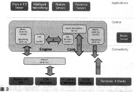連接層由3個關(guān)鍵部分組成:用戶設(shè)備、媒體網(wǎng)關(guān)和IP傳輸。ENGINE解決方案的媒體網(wǎng)關(guān)可以支持從很小數(shù)量的用戶擴展到數(shù)百萬用戶。本地交換機、匯接交換機和用戶交換機可以接入到媒體網(wǎng)關(guān)。多媒體用戶可通過SIP終端和IAD接入。ENGINE支持采用V5、ISUP、SIP和H.248等各種接入節(jié)點的用戶。在ENGINE解決方案中,媒體網(wǎng)關(guān)同時也是接入網(wǎng)關(guān),可以實現(xiàn)C5電話業(yè)務(wù)和基于SIP的寬帶用戶功能。