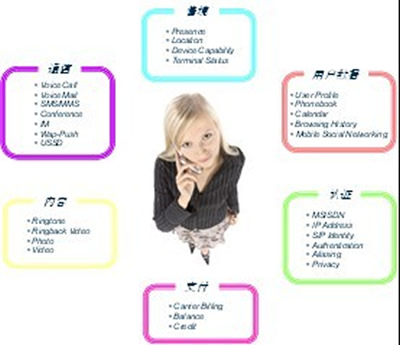 三是開放電信能力,運(yùn)營(yíng)商手里有很多得天獨(dú)厚的資源,如SMS、MMS、語(yǔ)音等可靠的通信服務(wù),用戶數(shù)據(jù),情境,認(rèn)證等。這些是運(yùn)營(yíng)商獨(dú)有的資源,在此基礎(chǔ)上開發(fā)出來(lái)的應(yīng)用也是獨(dú)一無(wú)二的。