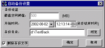 自動(dòng)備份由事先設(shè)定的磁盤空間報(bào)警閾值觸發(fā),它會(huì)發(fā)出信息提示或聲音提示,然后將用戶事先確定的時(shí)間范圍內(nèi)的錄音文件全部備份到客戶機(jī)硬盤、磁盤陣列或其他記錄介質(zhì)上,并且可以自動(dòng)刪除系統(tǒng)硬盤上已經(jīng)被備份出來(lái)的文件。