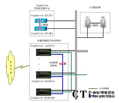 同時基于ZingSwitch® CVNET平臺的系統(tǒng)網(wǎng)絡(luò)架構(gòu)中,AG100(IP語音網(wǎng)關(guān))自身具有99.999%的高穩(wěn)定性外,具有負載均衡能力保證語音接續(xù)的不中斷。