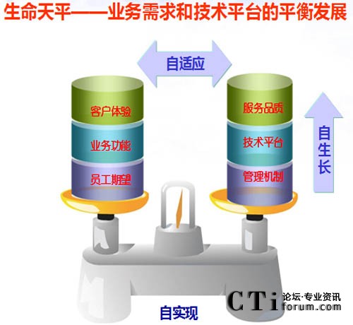 “生命天平”所體現(xiàn)的聯(lián)絡(luò)中心運(yùn)營管理是一個(gè)動(dòng)態(tài)持續(xù)的過程,客戶體驗(yàn)、業(yè)務(wù)功能和員工期望是不斷變化的,這就要求平臺(tái)要具有生命力,要不斷滿足客戶和業(yè)務(wù)新的需求,能夠主動(dòng)的根據(jù)客戶體驗(yàn)提升服務(wù)品質(zhì),跟隨業(yè)務(wù)功能變化提升技術(shù)平臺(tái),結(jié)合員工期望,完善和改進(jìn)管理機(jī)制。使聯(lián)絡(luò)中心始終處于自生長(zhǎng)、自適應(yīng)、自實(shí)現(xiàn)的平衡調(diào)節(jié)過程中。