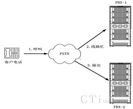 多套聯(lián)絡中心也可以通過PBX語音對接得方式實現(xiàn)呼叫互轉(zhuǎn),其中最典型的應用就是溢出呼叫轉(zhuǎn)接,通過交換機轉(zhuǎn)接的方式,實現(xiàn)服務溢出處理。
