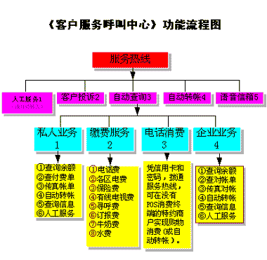 2.2 銀座《銀行客戶(hù)服務(wù)呼叫中心》功能(服務(wù)內(nèi)容)流程圖: