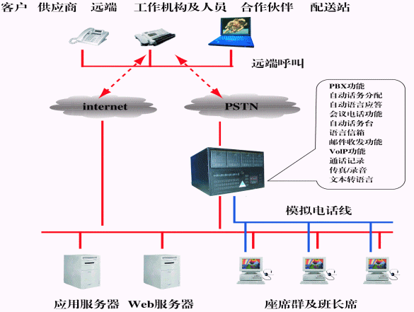 · 基于IP的分布式技術,可以實現(xiàn)公司業(yè)務、物流中心、倉庫、銷售代表、售后服務等部門通過VoIP方式的有機結(jié)合,節(jié)省企業(yè)的運營成本,也可以拓展企業(yè)銷售與服務的外延;
