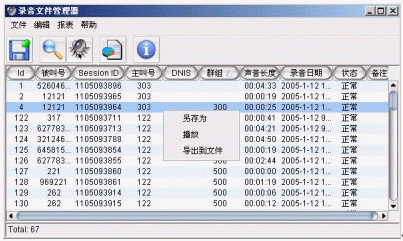 Manager是奧迪堅全新推出的基于數(shù)據(jù)庫的錄音文件管理應用軟件,主要針對ACM的內(nèi)置錄音系統(tǒng)所錄制下來的文件進行索引、播放、保存、備份、格式轉換、搜索等各項操作,使管理者能夠對客戶服務人員進行服務質量考核與管理,保證微笑客戶服務,提升客戶的滿意度。整個服務中心的電話錄音采用電腦數(shù)字化技術,因此無需增加傳統(tǒng)的錄音服務器,每路座席外線都自帶錄音資源,可以進行多線同時錄音,錄音記錄,錄音回放,并且可以實現(xiàn)撥號/摘機識別/掛機識別/通知錄音/錄音監(jiān)聽/完成記錄等功能,每個模塊均采用獨立運行方式,互為備份不影響。奧迪堅電話錄音系統(tǒng)提供智能型的?旖M合設置和條件,包括錄音查詢及系統(tǒng)參數(shù)設置;通道狀態(tài)設置;各種條件的錄音查詢;多通道連選同時播放;組合的保存、備份和刪除;工作日志的記錄和打。幌到y(tǒng)和用戶權限的增刪編輯等功能,極大的方便管理人員的操作和使用。