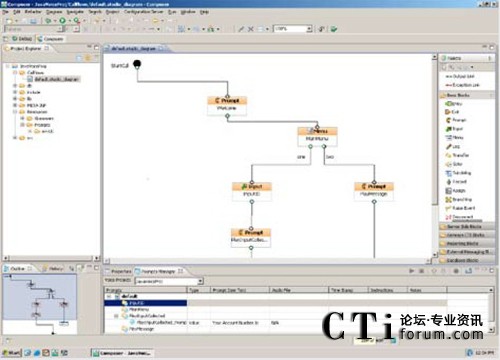 界面使用了標準的呼叫流程設計組件創(chuàng)建語音應用程序