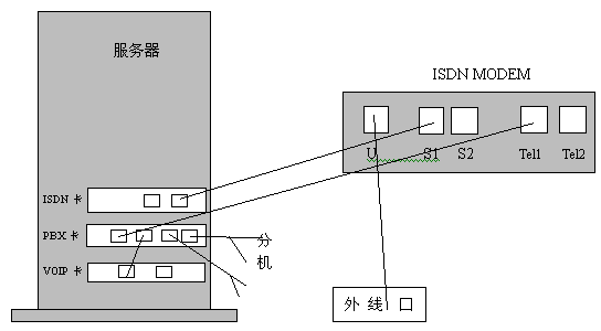 目前,很多的客戶采用的上網(wǎng)方式是ISDN接入,我們來說明一下如何用ISDNNBX3000系統(tǒng)進行連接。