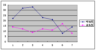 第五:考核指標(biāo)及獎勵機(jī)制的建立:呼出人員必須有相應(yīng)的考核辦法及獎勵機(jī)制,這從表1我們可以清楚地看到,呼出員的業(yè)績還不是很穩(wěn)定,有下降趨勢,而且幅度較大,這是由于在試運(yùn)行期間沒有建立相應(yīng)的考核指標(biāo)及獎勵機(jī)制造成的,而有相應(yīng)機(jī)制的業(yè)務(wù)員的業(yè)績相對要穩(wěn)定得多。當(dāng)然富爾已經(jīng)意識到這個問題了,并采取了相應(yīng)的措施,目前2個呼出人員每人每天均穩(wěn)定在1萬元左右,說明采取的措施得力。
