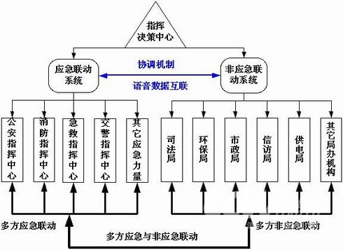 所謂“應(yīng)急與非應(yīng)急一體化聯(lián)動(dòng)”,就是在應(yīng)急聯(lián)動(dòng)和非應(yīng)急聯(lián)動(dòng)的基礎(chǔ)上,通過先進(jìn)的技術(shù)手段實(shí)現(xiàn)應(yīng)急聯(lián)動(dòng)系統(tǒng)與非應(yīng)急聯(lián)動(dòng)系統(tǒng)的高度整合,無(wú)縫聯(lián)接,并通過相應(yīng)的協(xié)調(diào)機(jī)制,實(shí)現(xiàn)各種應(yīng)急處置力量和非應(yīng)急處理部門的一體化的協(xié)同與聯(lián)動(dòng),以共同應(yīng)對(duì)和協(xié)調(diào)解決各種尤其是涉及多個(gè)方面的緊急或非緊急的事件和問題。