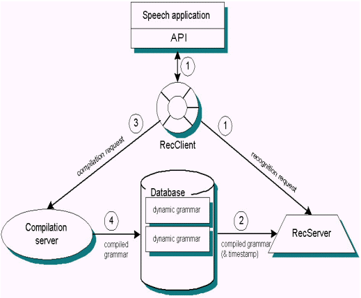 5.當RecServer接收到另外的請求時,使用動態(tài)語法時間戳檢查數(shù)據(jù)庫中的語法是否已經(jīng)更新。如果該語法已經(jīng)改變,則RecServer更新其本地副本。否則,它利用緩存的副本處理識別請求。