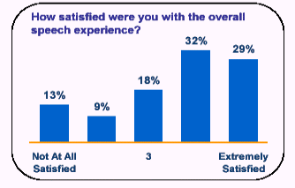 之所以商業(yè)人士選擇自動(dòng)化的語(yǔ)音服務(wù)是因?yàn)樗芴峁└匀粷M意的服務(wù)給客戶,而不是通過(guò)麻煩的鍵盤(pán)式或按鍵電話式的操作系統(tǒng)。毫無(wú)疑問(wèn),大多數(shù)的使用者(61%)對(duì)最近使用的語(yǔ)音服務(wù)系統(tǒng)表示了極高的滿意度。