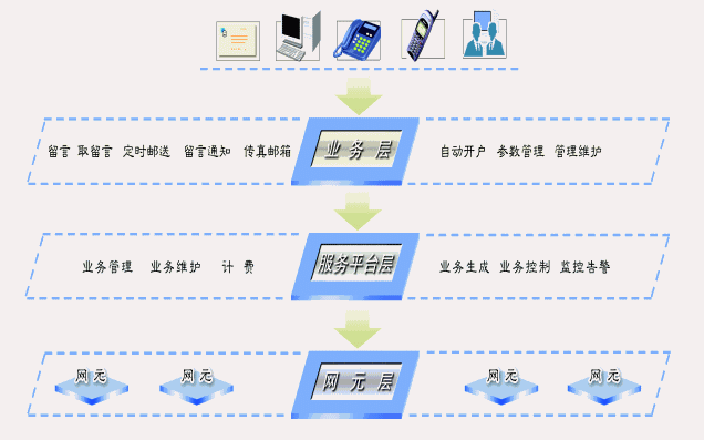 PAS-VMS語音信箱系統(tǒng)是計算機和現(xiàn)代通信技術緊密結合的一種應用,尤其是和短消息結合起來可以大大提高電話接通率,同時將增強電信運營商的服務質量。當用戶撥打某終端用戶時,若遇到用戶忙、不在服務區(qū)、久叫不應、關機、呼叫轉移等情況時,就自動將該用戶引導到語音信箱系統(tǒng)中,用戶可以選擇留言或回送主叫號碼。系統(tǒng)通過短消息(支持移動網(wǎng)和固網(wǎng))、呼叫中的主叫回送等方式將原呼叫信息和留言通知機主,達到提供話音接通率和增收目的。