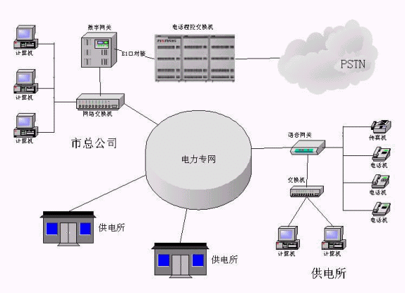 目前,某電力局在其境內(nèi)共有若干分支機(jī)構(gòu),分支機(jī)構(gòu)與總局之間目前都采用中國(guó)電信大網(wǎng)來(lái)實(shí)現(xiàn)機(jī)構(gòu)內(nèi)外話音通信要求,同時(shí)采用專線方式來(lái)實(shí)現(xiàn)相互間數(shù)據(jù)的傳輸.話費(fèi)開(kāi)支始終高居不下.