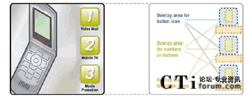 互作用提出了更進(jìn)一步的挑戰(zhàn)。能夠使用戶訪問(wèn)多個(gè) TV 頻道以及獲得其他服務(wù)的視頻門戶,是一個(gè)很好的研究實(shí)例。視 頻門戶顯示了基于每個(gè)用戶活動(dòng)、訪問(wèn)權(quán)限、服務(wù)描述等的服務(wù)菜單。一般來(lái)說(shuō),菜單是有限列表,用戶通過(guò)在手持終端 按下相應(yīng)的鍵來(lái)進(jìn)行選擇 (圖2.通過(guò)示意圖說(shuō)明了動(dòng)態(tài)菜單的映射方法)。為了創(chuàng)建菜單,應(yīng)用程序控制了基礎(chǔ)架構(gòu),而該 基礎(chǔ)架構(gòu)動(dòng)態(tài)地生成了有限列表,并在當(dāng)前的視頻流頂端顯示為一個(gè)靜態(tài)覆蓋圖。相同技術(shù)可用于顯示基于用戶活動(dòng)或位 置進(jìn)行品牌和廣告宣傳的 logo 或文本。