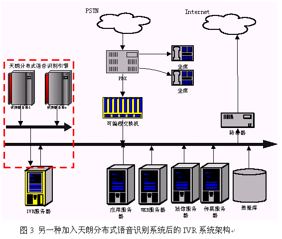 隨著語(yǔ)音識(shí)別的實(shí)用化進(jìn)程加快,人們?cè)絹碓秸J(rèn)識(shí)到采用語(yǔ)音識(shí)別技術(shù)有利于極大的提高傳統(tǒng)按鍵方式IVR界面的友好性,提高服務(wù)的質(zhì)量。另外,采用語(yǔ)音識(shí)別技術(shù)可以把以前不可能實(shí)現(xiàn)的事情變得可行。因此,目前IVR行業(yè)越來越多的人認(rèn)識(shí)到語(yǔ)音識(shí)別技術(shù)的重要性,一些先行者已把語(yǔ)音識(shí)別技術(shù)集成到他們的系統(tǒng)中。那么,一個(gè)IVR廠商如何把天朗分布式語(yǔ)音識(shí)別系統(tǒng)集成到他們的IVR中呢?