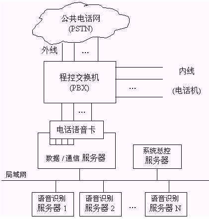 。4)應(yīng)用層軟件:安裝在數(shù)據(jù)/通信服務(wù)器上,負(fù)責(zé)與交換機(jī)和總控程序進(jìn)行交互。它根據(jù)識(shí)別結(jié)果向交換機(jī)發(fā)送電話轉(zhuǎn)接指令(例如DTMF鍵碼)。