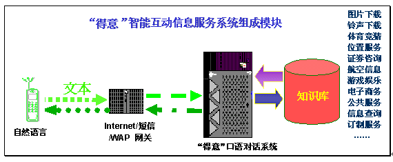 "得意口語對話系統(tǒng)"可以充分滿足互聯(lián)網(wǎng)、短信、WAP等業(yè)務的智能互動信息服務需求,為SP和用戶提供了更易用、好用、實用的信息交流平臺。