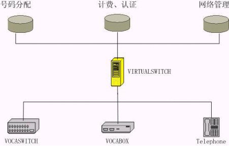 Virtual Switch 虛擬交換系統(tǒng)負(fù)責(zé)管理VOIP交換機(jī)(VOCASWITCH)、IP終端設(shè)備(VOCABOX,LANPHONE),提供和傳統(tǒng)電話業(yè)務(wù)相當(dāng)?shù)摹⒒贗P的集中呼叫控制。