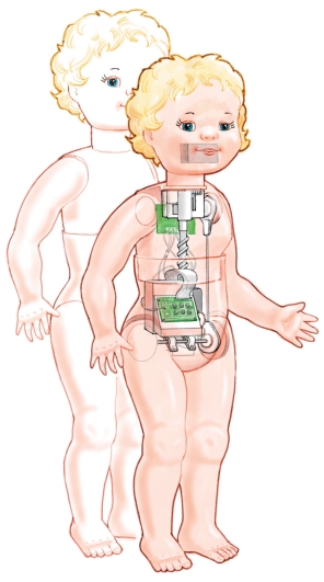 從機(jī)械上來說,夢想娃娃只是件簡單的藝術(shù)品。里面有三個(gè)馬達(dá):一個(gè)用來走路,一個(gè)用來成長,一個(gè)用來動(dòng)嘴。爬行和走路是由古怪的凸輪完成的。凸輪向玩具的某邊傾斜的時(shí)候玩具另一邊的手和腳就會向前移動(dòng)。然后凸輪又向另一邊傾斜,這邊的手腳又向前移動(dòng),這樣,玩具就能夠爬行和走路了。