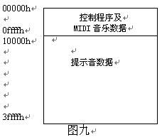 地址分配如下:00000h-0ffffh用于存放控制程序及MIDI音樂(lè)數(shù)據(jù),10000-3ffffh存放提示音數(shù)據(jù)。