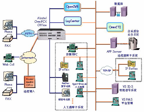OmniCTI:負(fù)責(zé)計算機(jī)和通信子系統(tǒng)之間的通信功能,提供ACD排隊和技能座席功能。