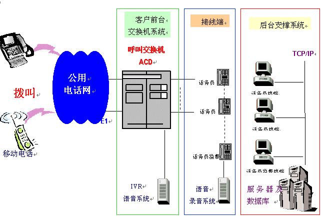 一個(gè)完整的呼叫中心解決方案通常由以下核心部分組成:自動(dòng)呼叫分配(ACD)、交互式語(yǔ)音應(yīng)答(IVR)、計(jì)算機(jī)電話綜合應(yīng)用(CTI)、錄音服務(wù)器、呼叫管理(CMS)等。