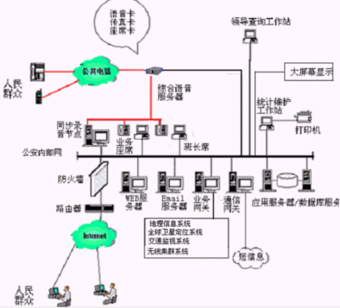 包括智能接警調(diào)度平臺(tái),警用GIS地理信息系統(tǒng)/交通監(jiān)視系統(tǒng)/GPS全球衛(wèi)星定位系統(tǒng)/無線集群系統(tǒng),數(shù)字錄音系統(tǒng),圖象監(jiān)控系統(tǒng)和大屏幕顯示系統(tǒng)等。